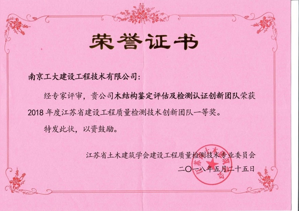 江苏省建设工程质量检测技术创新团队一等奖