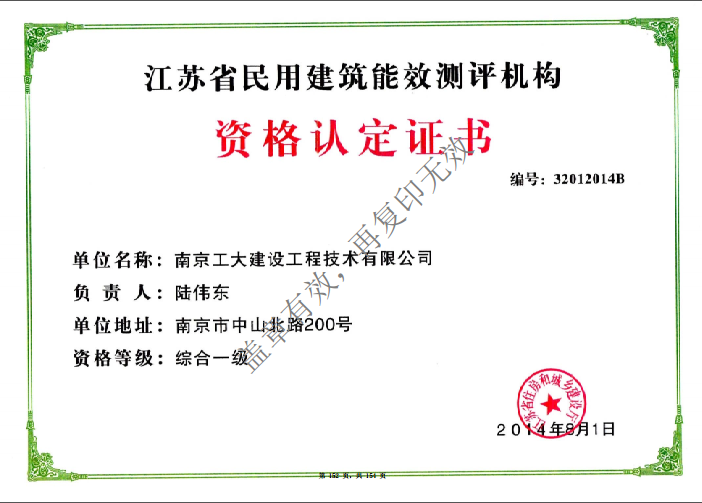 民用建筑能效测评机构资格认定证书