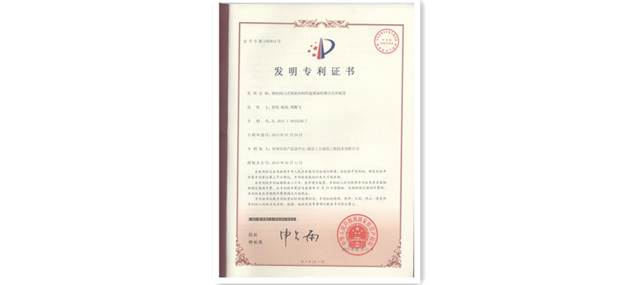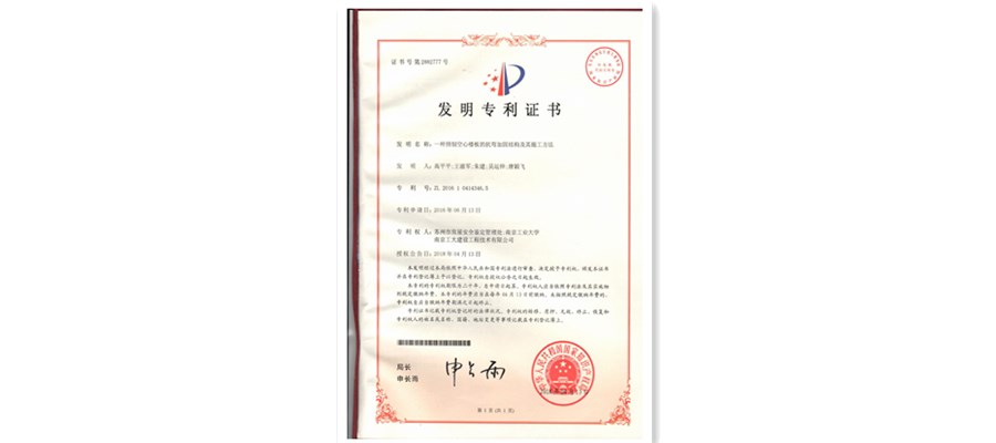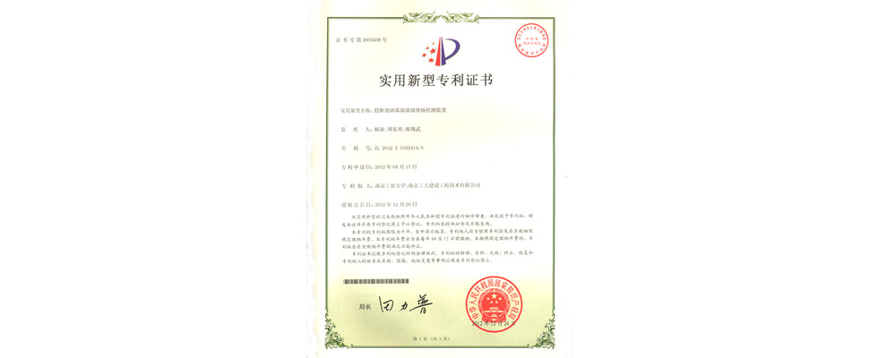 实用新型专利证书(玻璃幕墙预立柱埋件节点拉力性能现场检测装置洪鑫等)